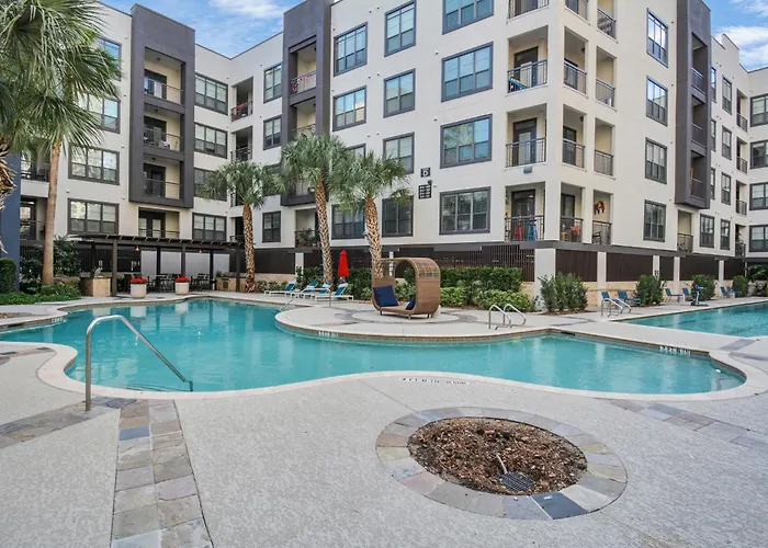 To enjoy your vacation in Houston, stay at the spacious 70 m² Miami Vice - 1Br-Nrg-Medical Center-Galleria Houston apartment, which is within a 7-km distance of the Water Wall and approximately a 10-minute drive from Feld Park. Access to a swimming pool ensures a more relaxing stay.